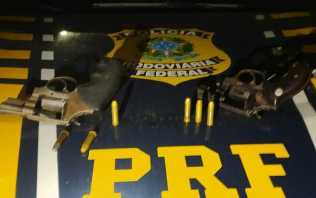 Durante uma fiscalização no KM 84 da BR-101, agentes encontraram um veículo trafegando de forma suspeita. Na revista, os policiais encontraram dois revólveres cal.38 dentro do carro e um simulacro de pistola com o terceiro passageiro.