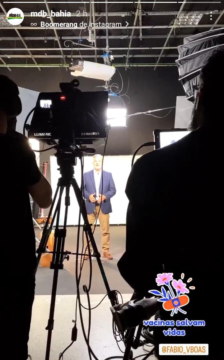 ex-secretário estadual de Saúde e pré-candidato a deputado federal, Fábio Vilas-Boas, aliado do governador Rui Costa (PT), foi ‘flagrado’ gravado uma inserção de mídia do MDB Bahia. O momento foi registrado nas redes sociais da sigla, nesta segunda-feira (28).