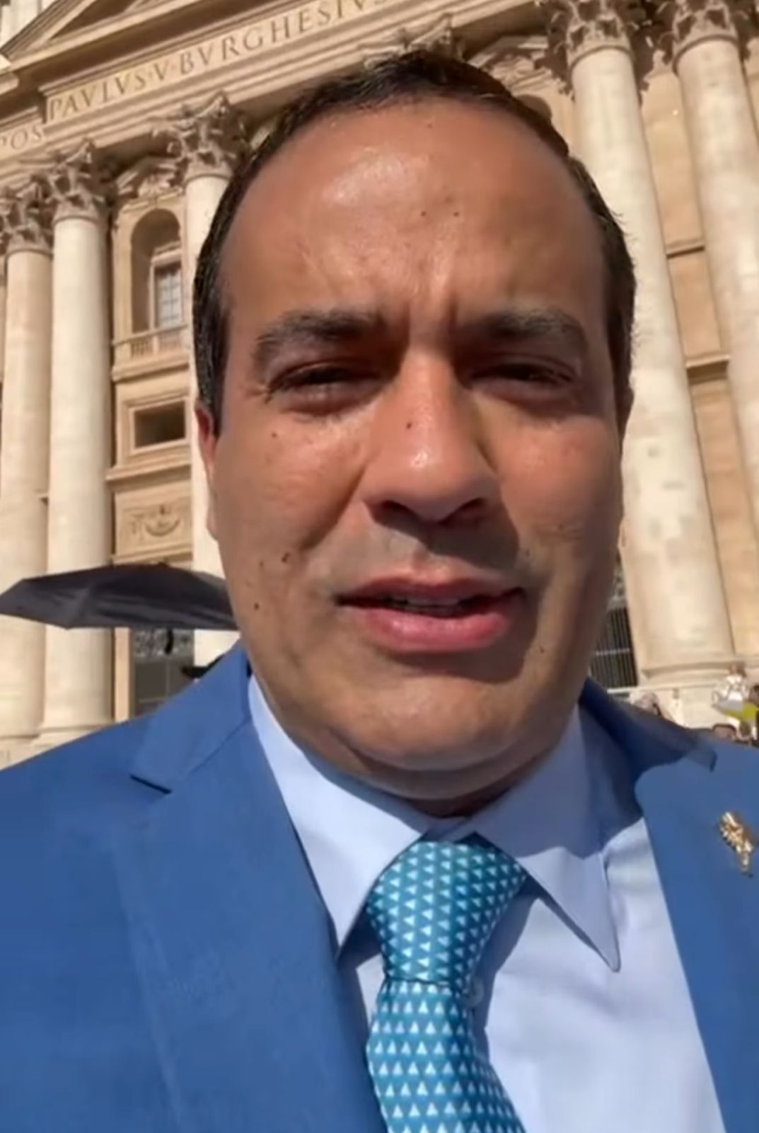 “Estamos aqui eu, Rebeca e Breno no Vaticano, na Praça São Pedro, onde vamos participar de uma audiência com o Papa Leão 14. Oportunidade de agradecer a Deus por tudo, que nos dê sabedoria”, afirmou o prefeito.
