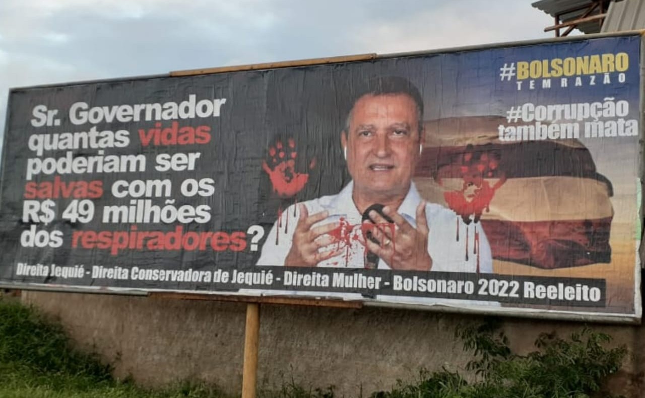 O governador Rui Costa (PT) foi algo de uma cobrança de populares na cidade de Jequié, nesta segunda-feira (10). Um outdoor na cidade cobra o governador sobre a compra de respiradores que gerou prejuízo de R$ 50 milhões para os cofres públicos baianos.