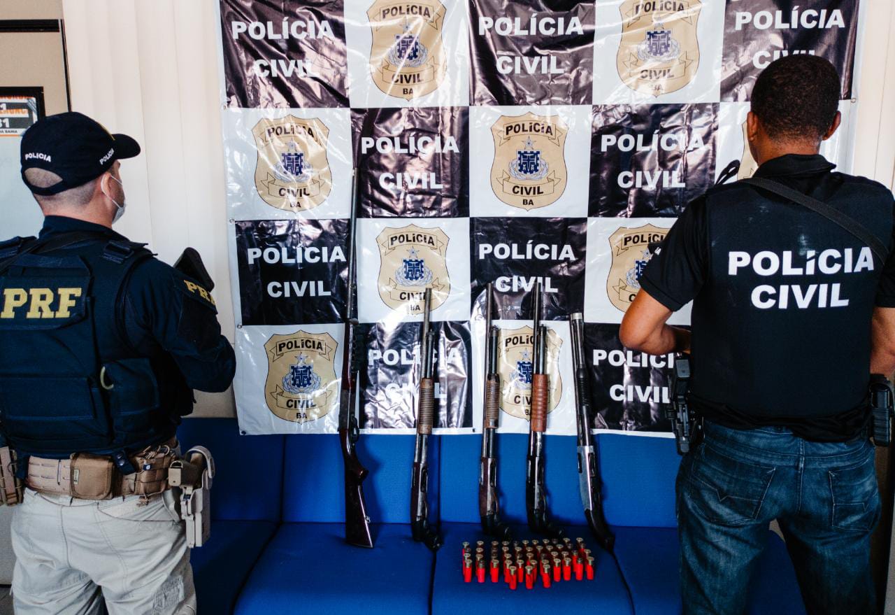 Cinco armas e 47 munições foram apreendidas com um casal, na BR-101, na manhã desta terça-feira (18), em ação conjunta realizada com policiais da 7ª Coordenadoria Regional de Polícia do Interior (Coorpin/Ilhéus) e da Polícia Rodoviária Federal (PRF). O arsenal pertencia a uma organização criminosa que atua na região.