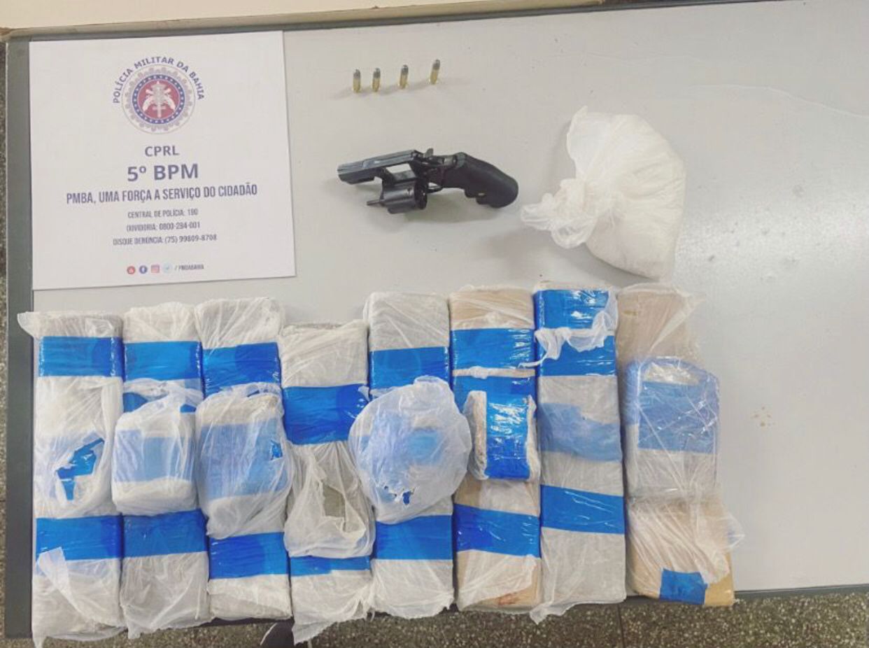 Um casal foi preso transportando nove quilos de entorpecentes, entre eles, maconha e cocaína, além de um revólver, na última terça-feira (21), em Pinhões, zona rural de Euclides da Cunha.