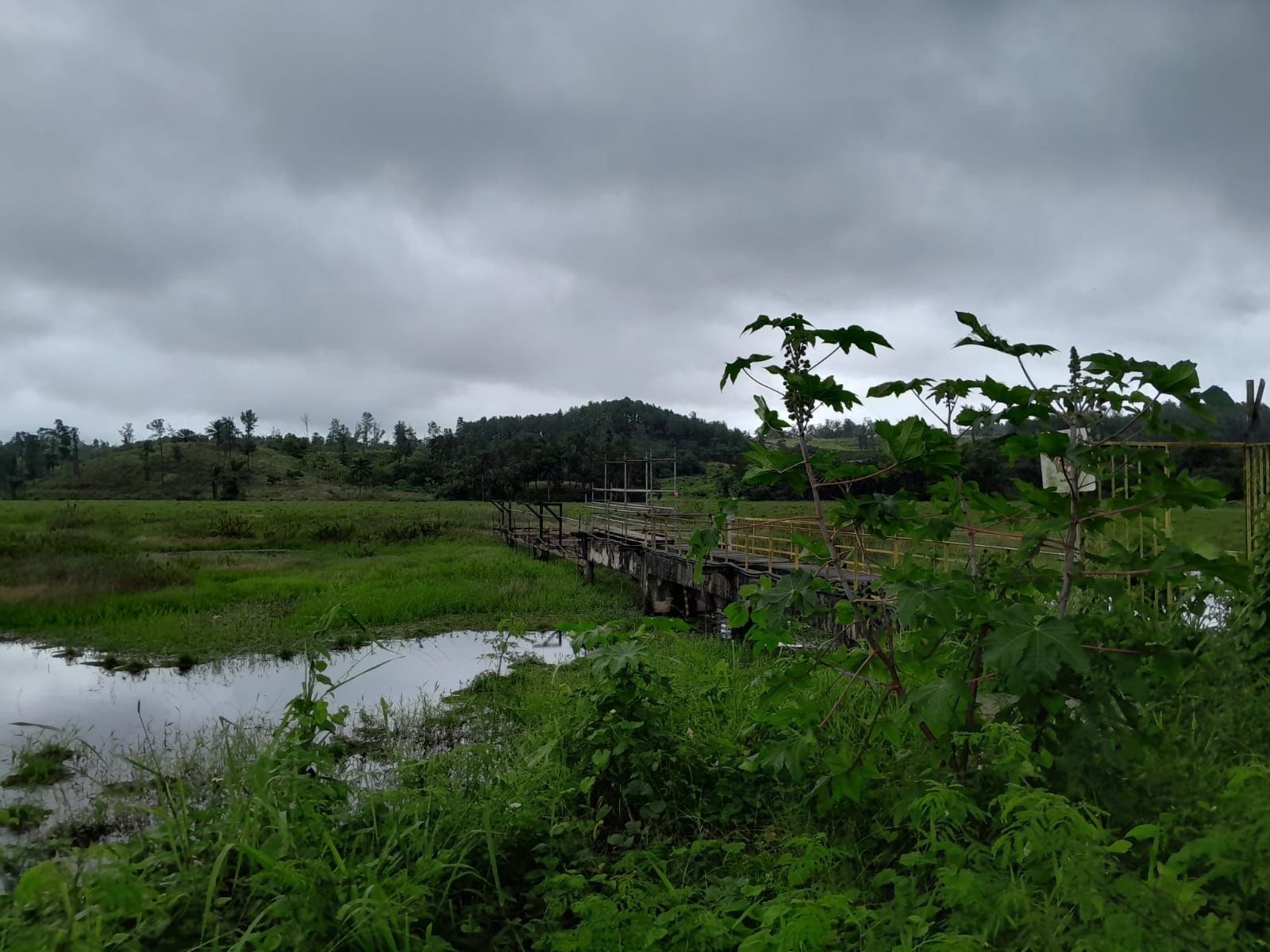 * Estrutura física do píer com ferrugem e sinais visíveis de abandono