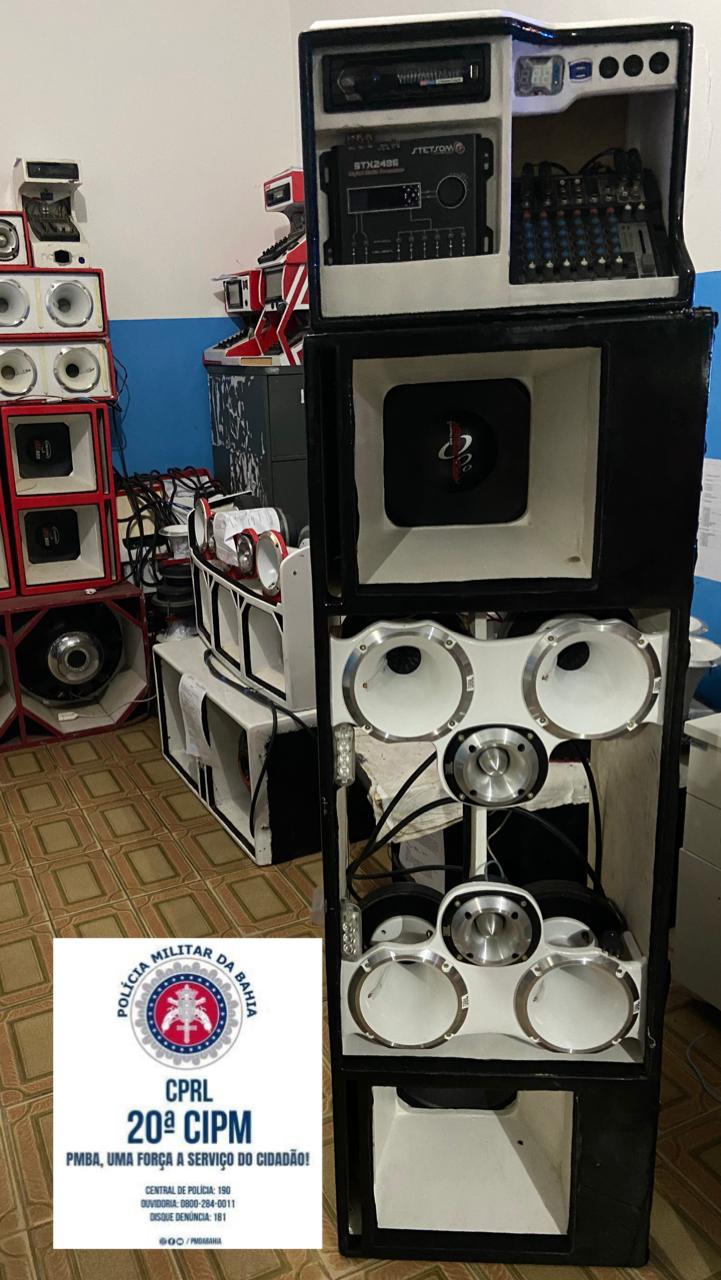 Em Amélia Rodrigues, no domingo (14), por volta das das 20h30, as guarnições flagraram cerca de 300 pessoas em um comemoração de aniversário, na localidade conhecida como Fazenda Quatro Estrada. Na ação, as equipes apreenderam um veículo com carroceria, quatro alto falantes, 22 cornetas, 24 tweeters e dois graves. Todos os equipamentos sonoros foram apresentados na Delegacia Territorial (DT) da cidade.