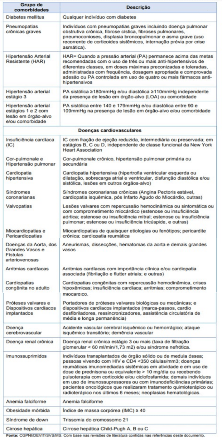 A prefeitura divulgou a lista de comorbidades que serão consideradas como prioridade na próxima fase de vacinação contra o novo coronavírus (Covid-19).