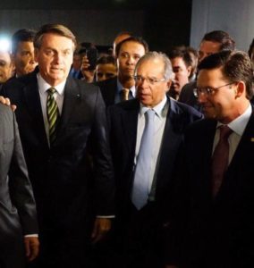 “O presidente @jairbolsonaro entregou ao @senadofederal o pacote que propõe o novo pacto federativo e a reforma tributária.”, escreveu.