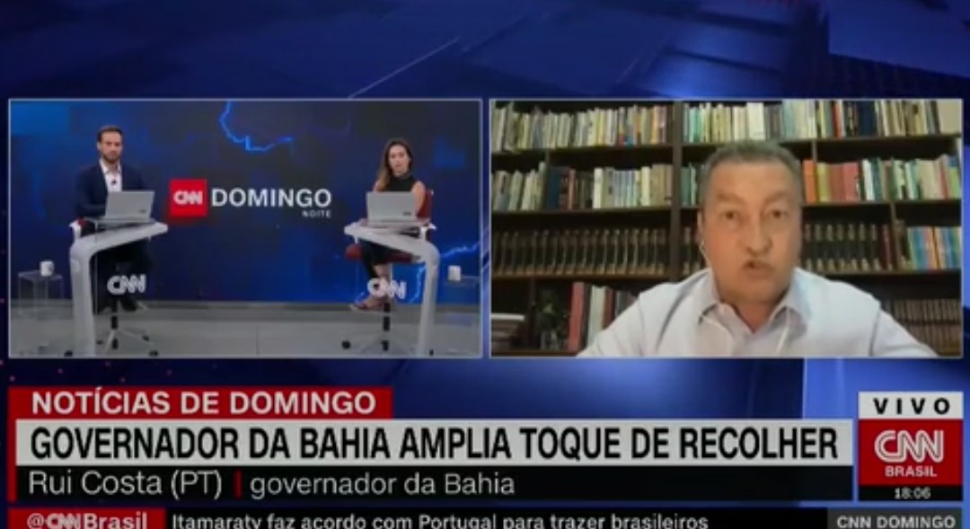 O governador Rui Costa (PT) constrangeu na tarde deste domingo os âncoras da CNN Brasil durante entrevista para falar sobre a atual situação da Bahia em relação a leitos ocupados e casos ativos de Covid.