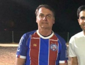 Bolsonaro vestiu a camisa do Bahia e posou para a foto, publicada por Aleluia nas redes nesta segunda-feira (30).