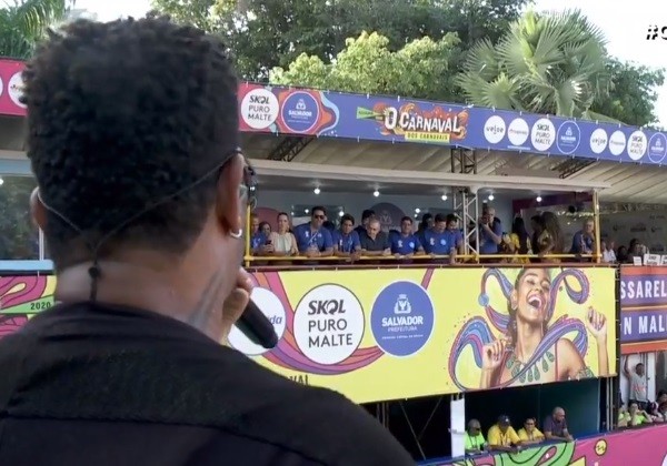 “Fico muito feliz de participar destes anos todo, deste convite que o senhor [ACM Neto] sempre pessoalmente fez para mim, de participar desta pipoca que é sempre maravilhosa”, dizia o cantor, sendo interrompido pelo apresentador Jonathan.