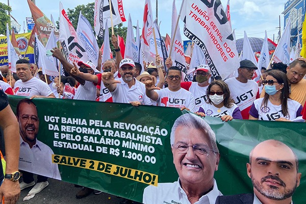 A União Geral dos Trabalhadores da Bahia (UGT-BA) defende um piso salarial estadual acima do salário mínimo. De acordo com o presidente da entidade sindical, Marcelo Carvalho, a Bahia é o maior polo da indústria e da geração de emprego do nordeste e o “mais justo seria que o Estado tivesse um piso salarial superior na região”. Essa, inclusive, foi uma das pautas da UGT-BA no desfile do 2 de Julho, realizado no último sábado.