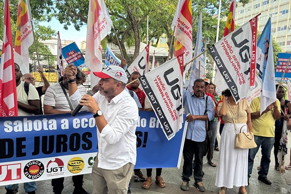 “Nossa manifestação é em defesa da população brasileira, que sofre com taxas de juros exorbitantes. É fundamental que tenhamos uma taxa justa, permitindo que as pessoas consigam honrar seus compromissos e, assim, melhorar sua qualidade de vida”, afirmou o presidente da UGT-BA, Marcelo Carvalho. Ele ressaltou ainda: “O que queremos é emprego, renda, dignidade, comida no prato e que nosso povo tenha acesso aos bens de consumo sem ser explorado pelo capital”.