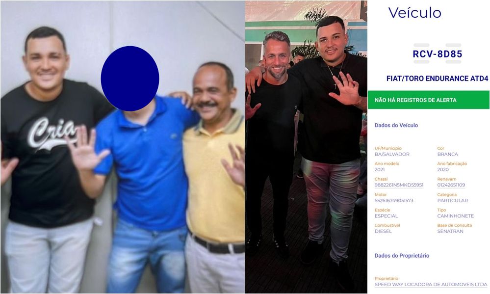 O carro usado para praticar o crime eleitoral, uma Fiat Toro branca, foi alugado na empresa Speed Way Locadora, localizada na Avenida Antonio Carlos Magalhães, em Salvador.